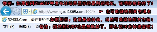 2、访问正常的发布站跳转到其它发布站(看域名是否自动更换)!→ 你被劫持了!