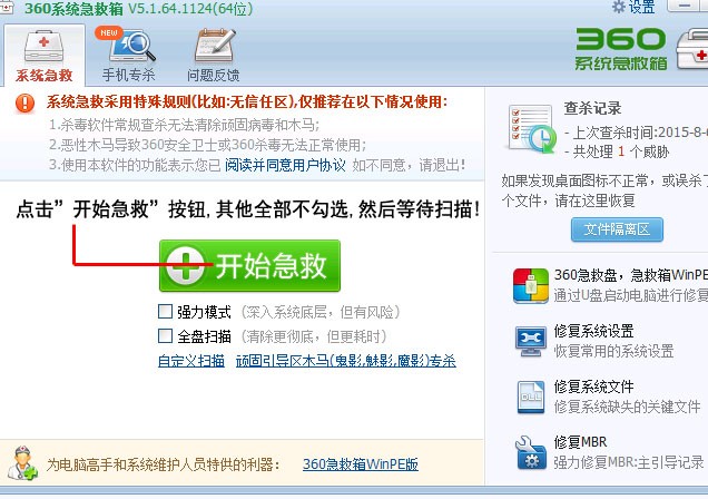 第一步:去360官网下载系统急救箱 www.360.cn/jijiuxiang (←点此下载)